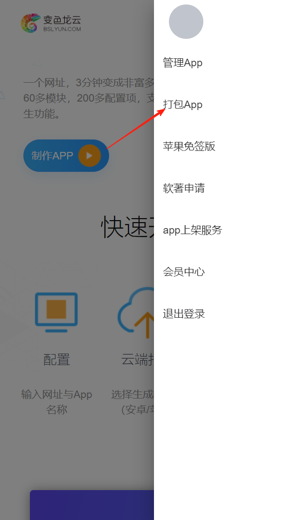 打开后点击右上角的菜单,选择【打包App】,选择【制作App】