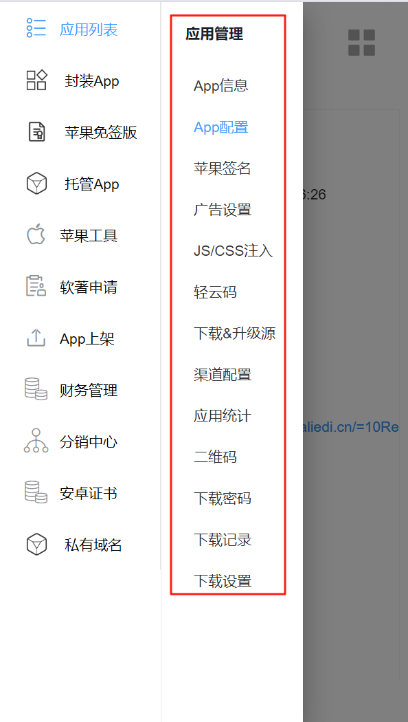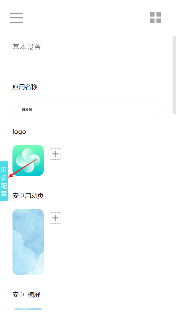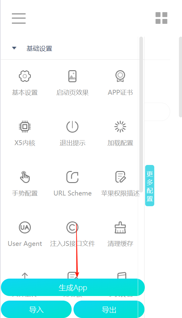 进入App配置页,点击【更多配置项】,看到更多的配置项与生成按键,点击【生成App】