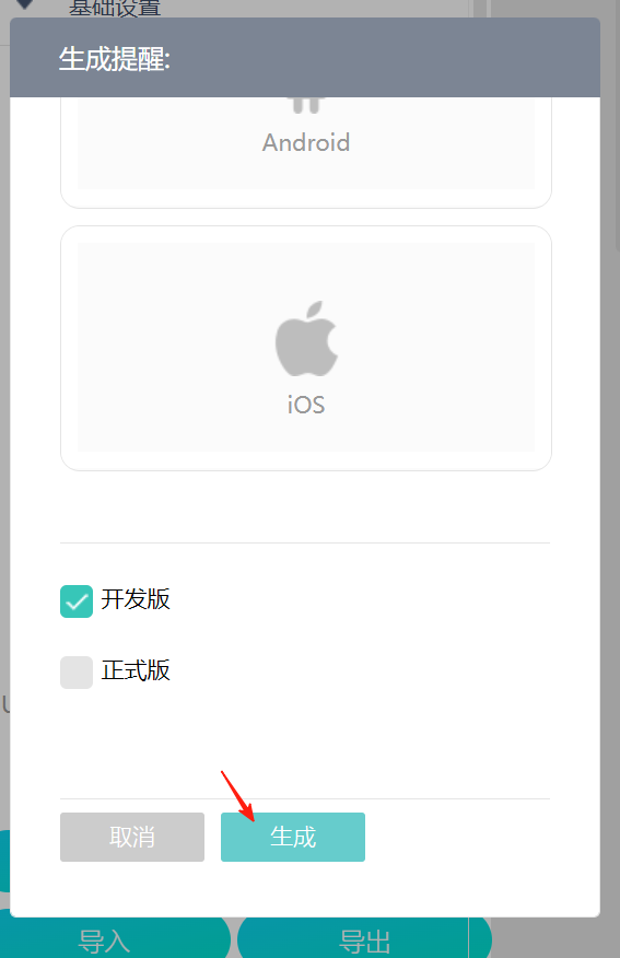 先择要生成系统应用,下拉界面会看到【生成】按键。生成完成后就得到了App。